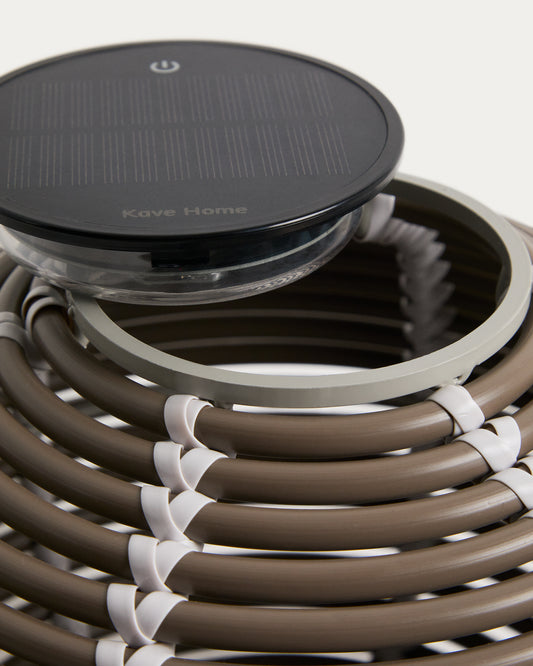 Garoina outdoor solar LED table lamp in taupe synthetic rattan Ø25cm