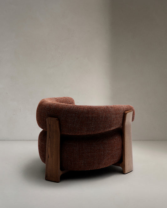 Granite brown chenille armchair with solid ash wood legs in a walnut finish FSC 100%