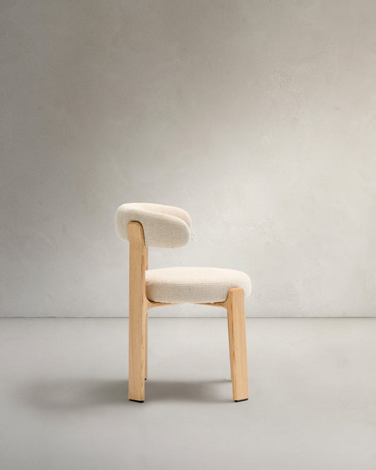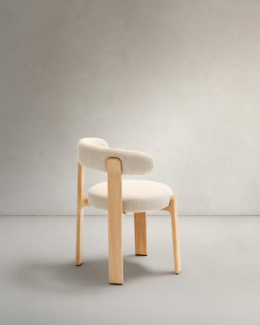 Granite chair in beige chenille and with solid ash wood in a natural tone finish FSC 100%