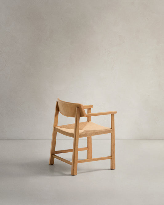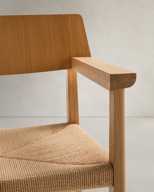 - Solid oak wood with a rope cord seat. Finished in a natural tone, which allows the texture and grain of the wood to be appreciated.