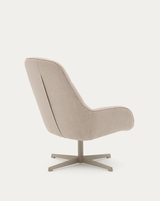 - Swivel armchair with cushioned arms upholstered in structured fabric with beige recycled polyester. It has a medium seat firmness.