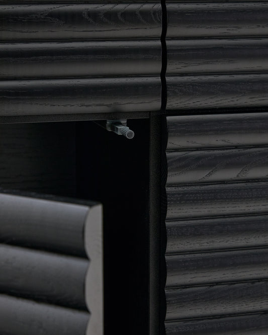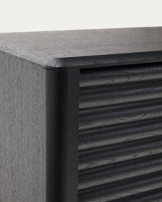 - Tall sideboard in solid oak with black stained finish.