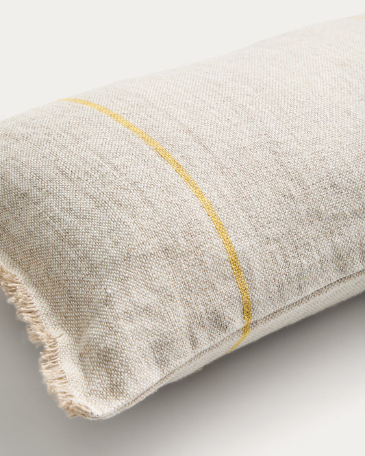 Lidore cushion cover in beige linen with contrasting yellow stripes 30 x 50cm