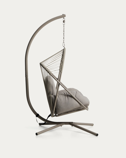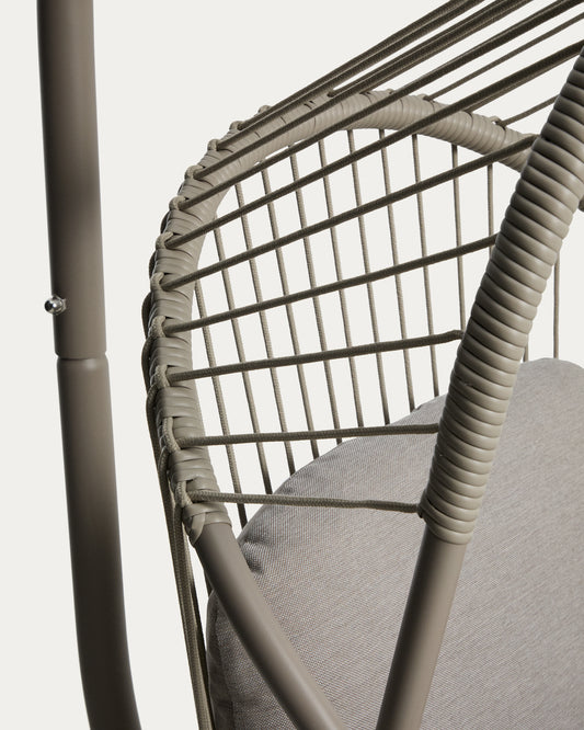 Livadi hanging armchair in steel and taupe rope cord