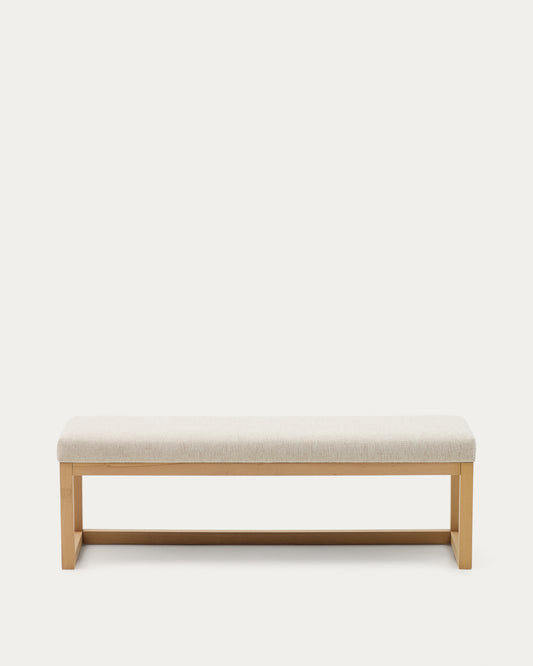 - Bench upholstered in beige chenille with a beech wood structure.