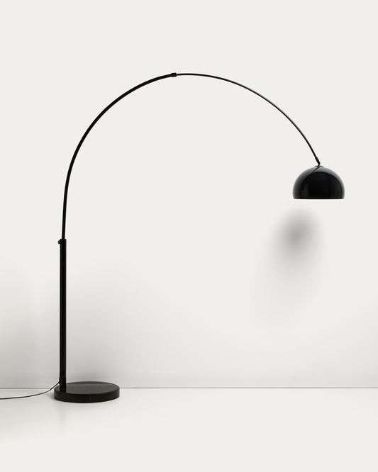 Madali floor lamp in steel with glossy black finish and black marble