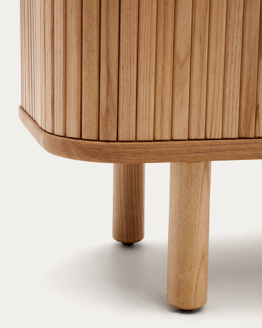 The Kave Home team has created the Mailen collection, with a contemporary design of rounded shapes, made of ash veneer and sliding wooden slatted doors that make it an authentic star.