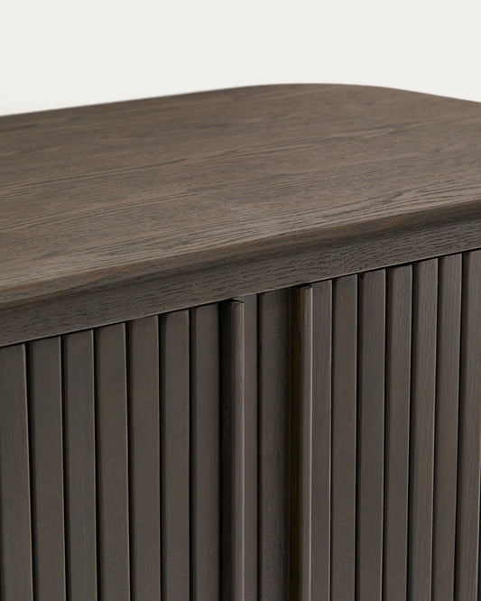 - 2 tambour sliding doors made of wooden slats to conceal or display the inside of the cupboard.