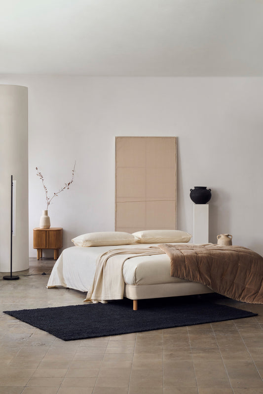 The Kave Home team has created the Mailen collection, with a contemporary design of rounded shapes, made of ash veneer and sliding wooden slatted doors that make it an authentic star.