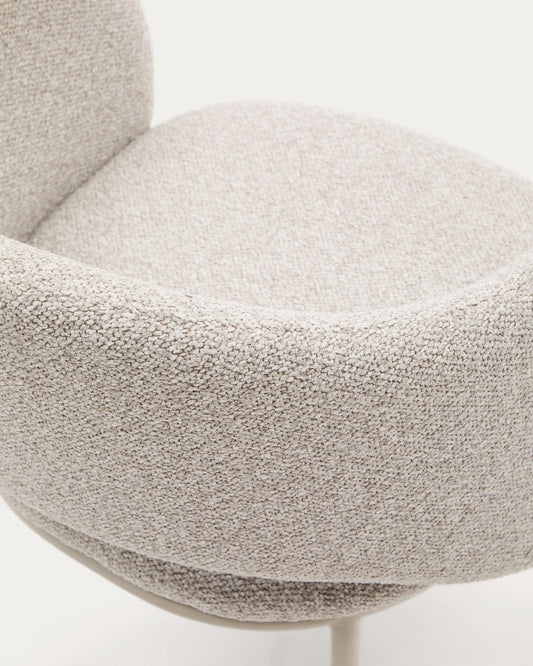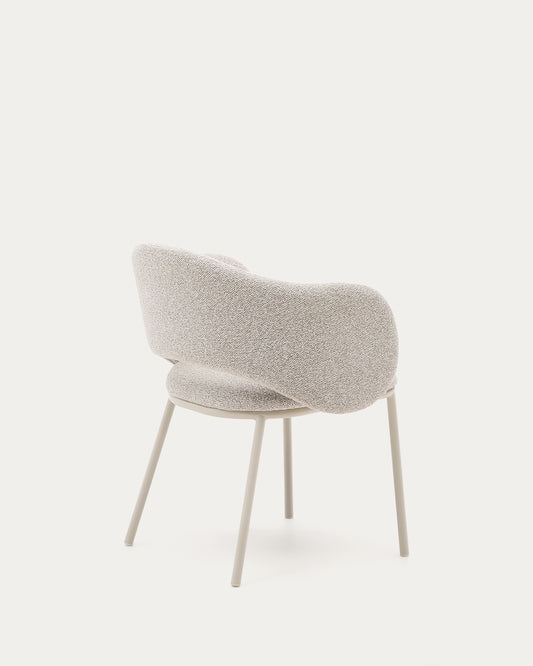 Maina chair in thick beige chenille and steel legs in a beige finish, FSC Mix Credit