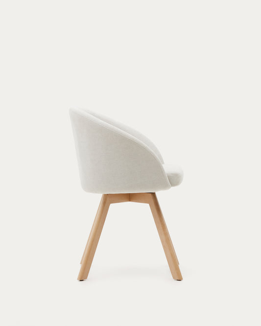 Marvin beige chenille swivel chair with solid beech wood legs in a natural finish FSC 100%