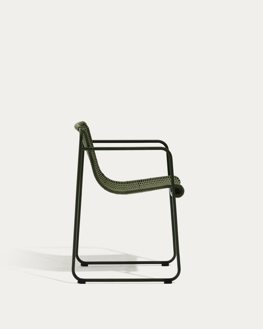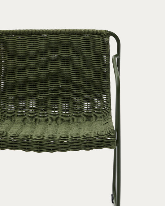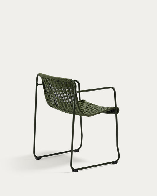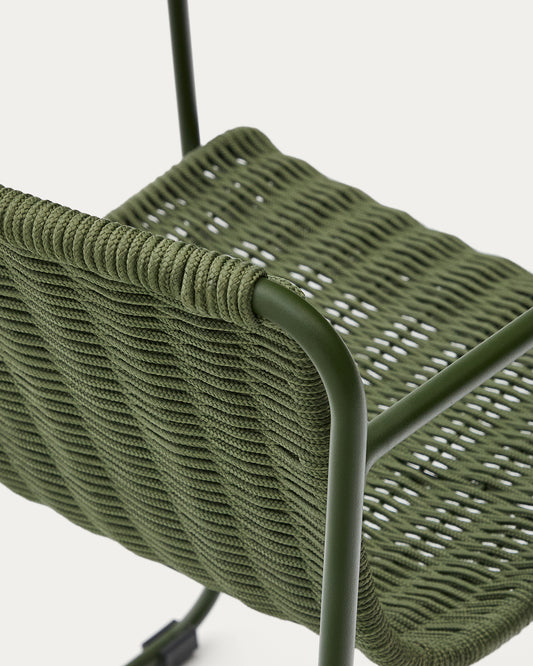 Maurina stackable chair in green galvanised steel and green rope cord