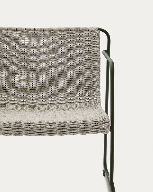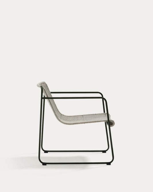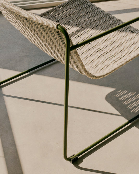 Maurina stackable armchair in green galvanised steel and ecru and grey rope cord