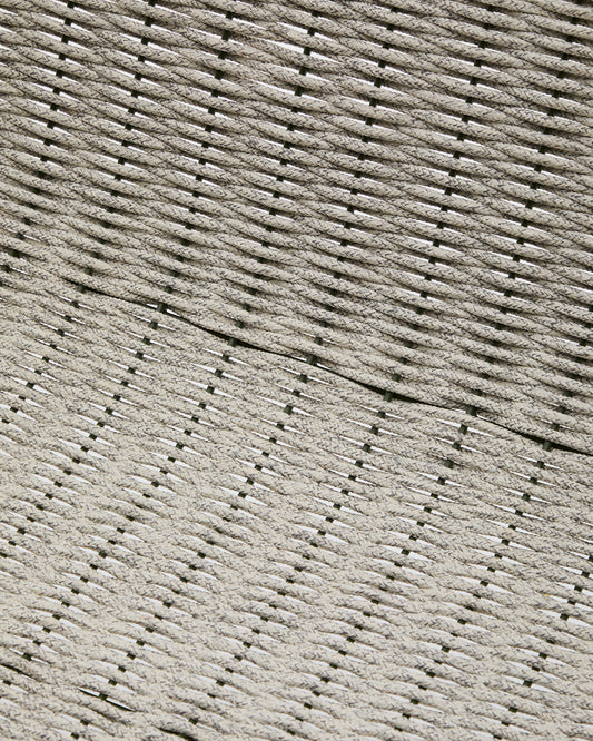 - Hand-woven Seat and backrest made with hand-woven, UV-resistant ecru and grey mottled rope cord.