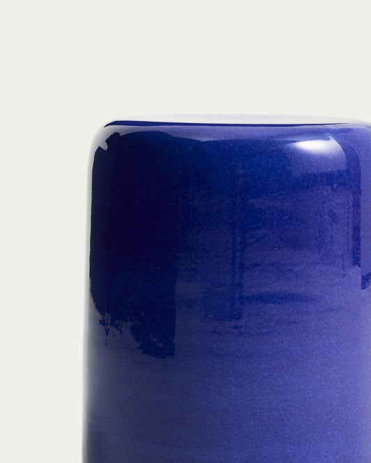 Mesquida outdoor side table in ceramic with glazed blue finish Ø 35 cm