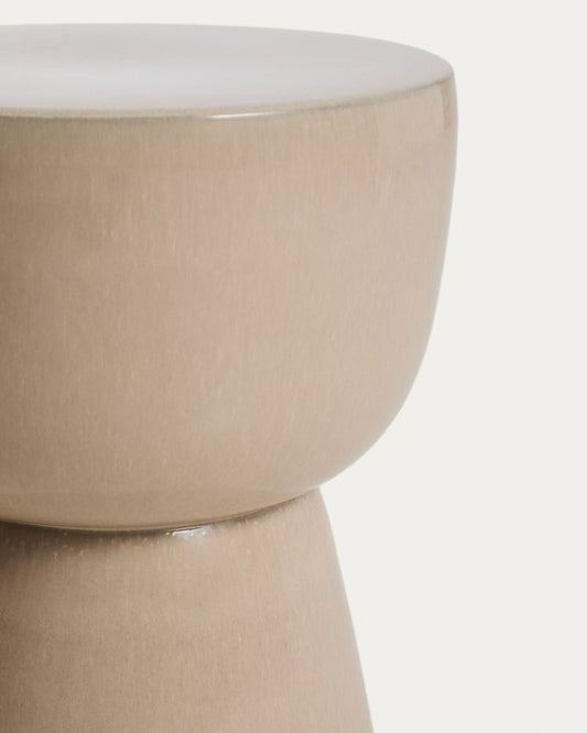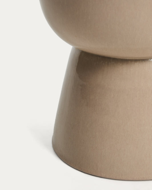 Mesquida outdoor side table in ceramic with glazed ecru finish Ø 36cm