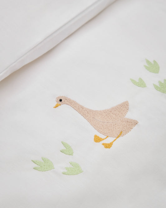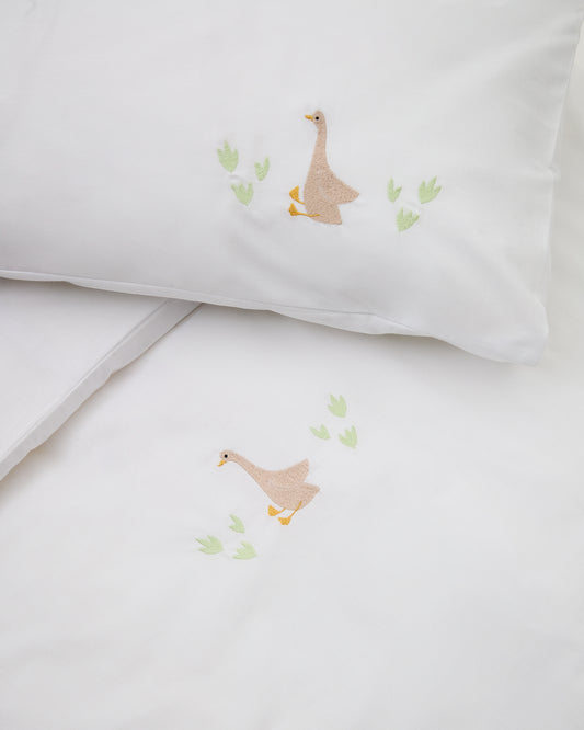 Milu set of duvet cover and pillow cases with embroidered goose for convertible cot and bed 70 x 140 cm