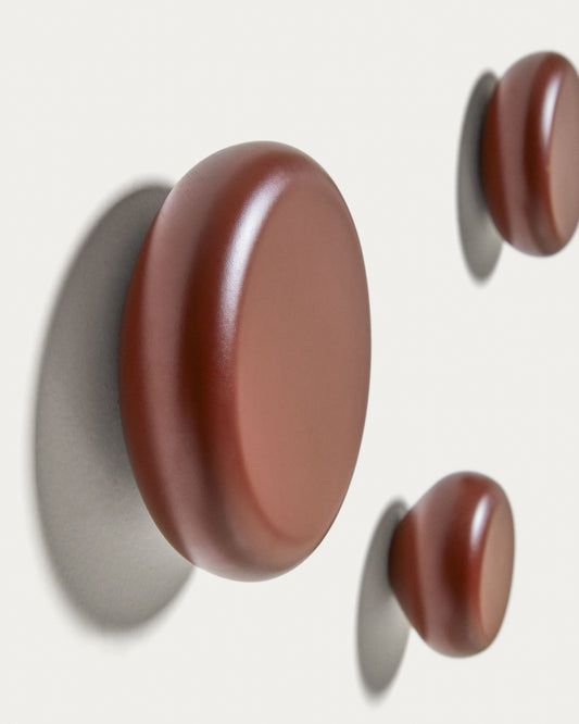 Nadue set of 3 solid beech wood wall hooks with a maroon finish