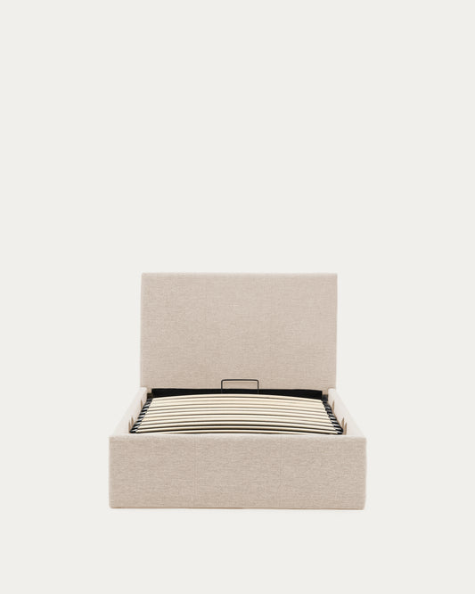 Nahiri beige chenille lift-up storage bed for a 90 x 200 cm mattress