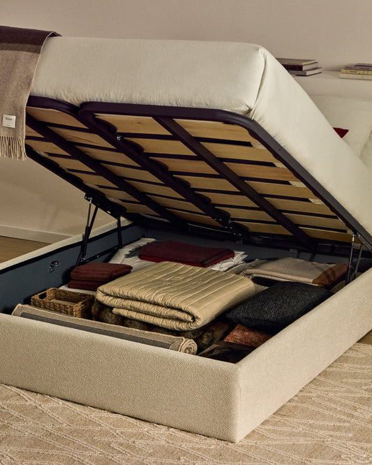- Ottoman bed base with removable cover for mattress 150 x 200cm. Its interior offers ample open-plan storage space, with no dividing panels, maximising usable capacity and facilitating organisation.