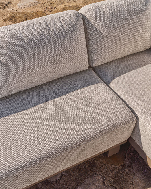 Nerano set with 5-seater corner sofa and coffee table in tempered glass and taupe aluminium