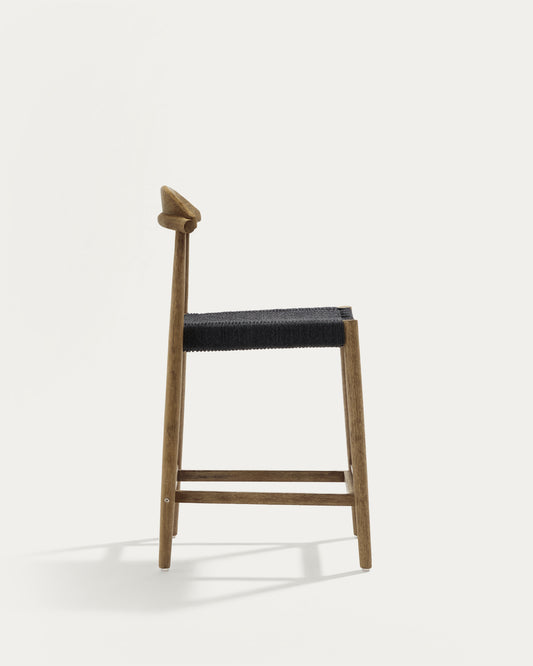 Nina Stool made of solid acacia wood with natural finish and black rope, height 62 cm