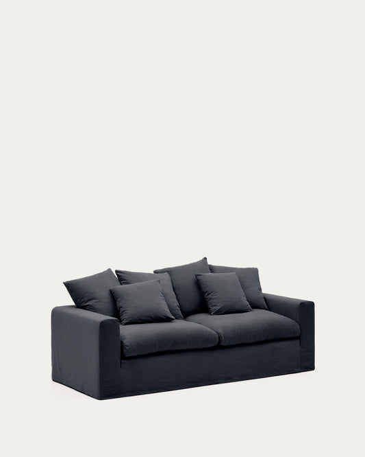 Nora 3-seater sofa with removable cover with linen and cotton cushions in anthracite grey 240cm