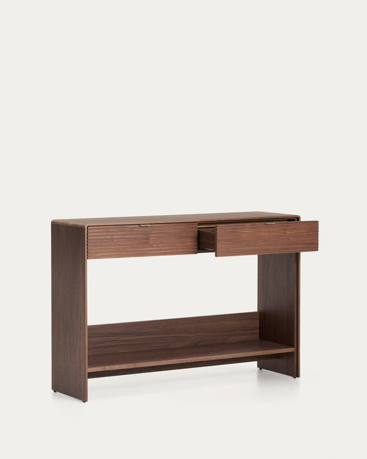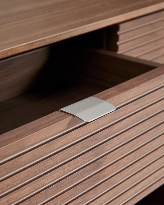 - Walnut veneer sideboard with 2 drawers and a shelf at the bottom.
