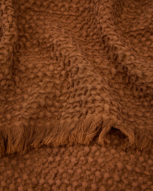 Nulina 100% cotton waffle blanket in dark orange 130 x 170 cm