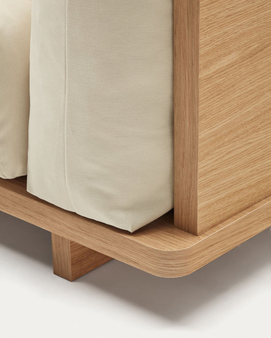 - Structure in oak wood veneer with a natural finish. Backrests, armrests, and seats with removable covers.