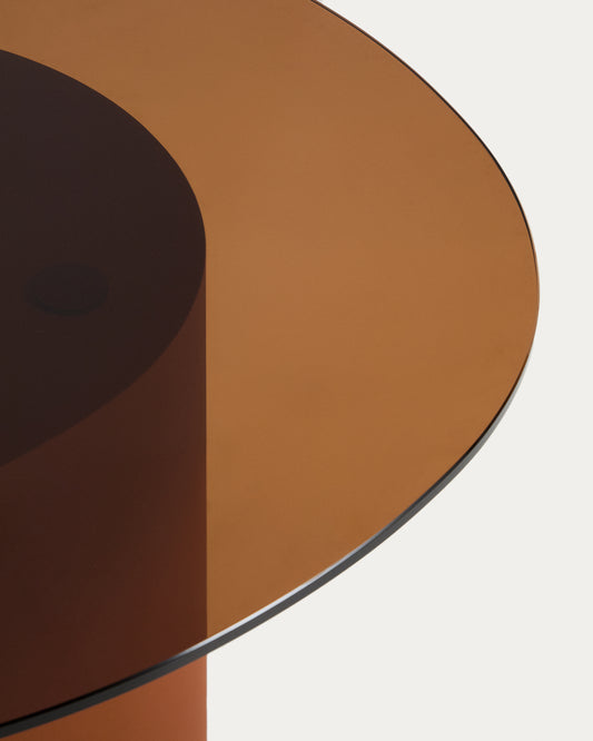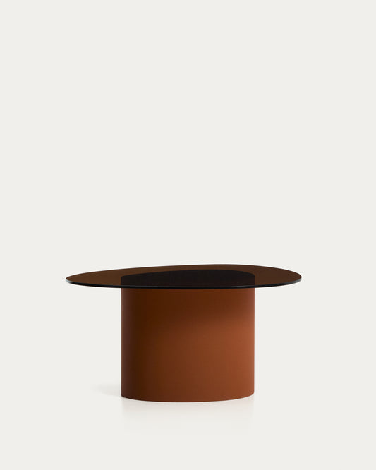 Olir coffee table in tempered glass and brown steel 82 x 74 cm