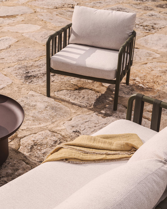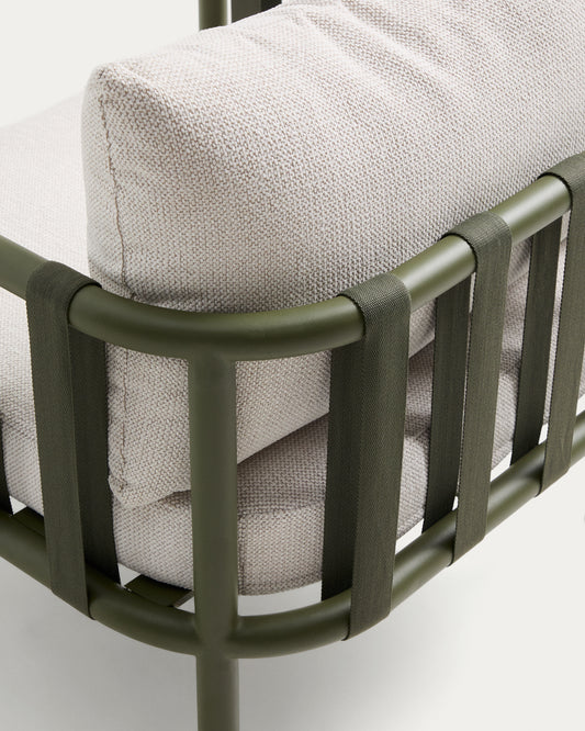 Omala set consisting of 2-seater sofa and 2 armchairs with green aluminium structure