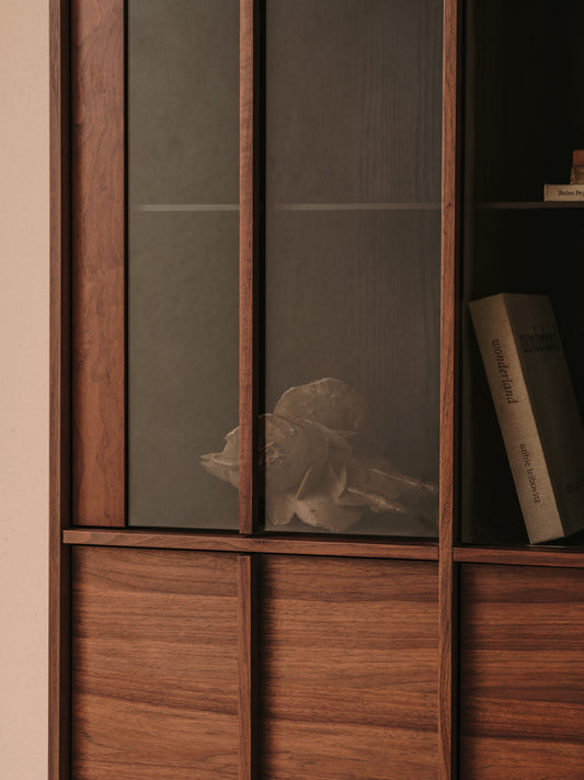 Onix display cabinet solid walnut and walnut veneer dark finish 100 x 170 cm FSC Mix Credit