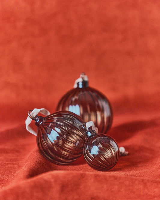 Oranel set of 2 brown recycled glass hanging ornaments Ø 9,5 cm