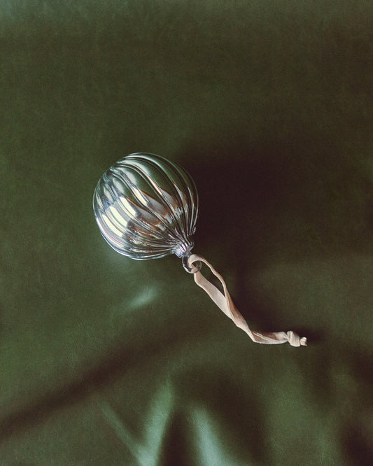 - Set of hanging ornaments made of recycled borosilicate glass.