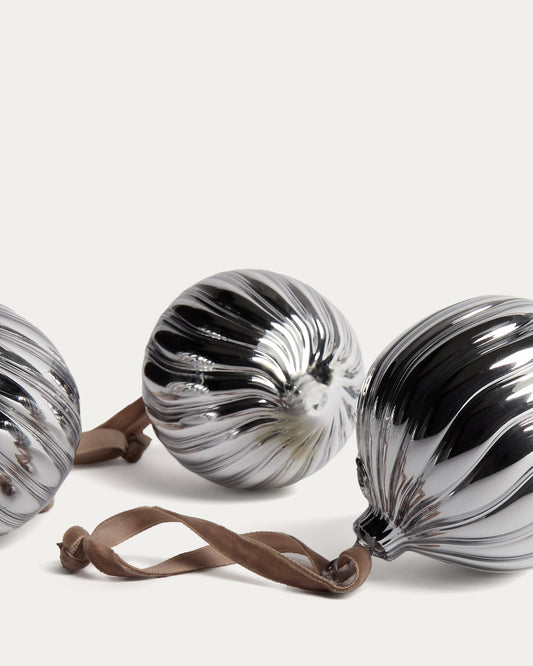 Oranel set of 2 silver recycled glass hanging ornaments Ø 10 cm