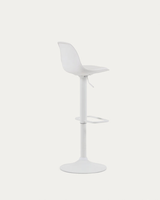 Orlando-T barstool white synthetic leather and matt white steel 60-82 cm