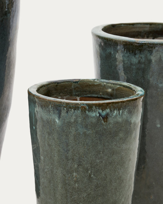 Rotja set of 3 terracotta planters with glazed green finish Ø 26 / 35 / 47 cm