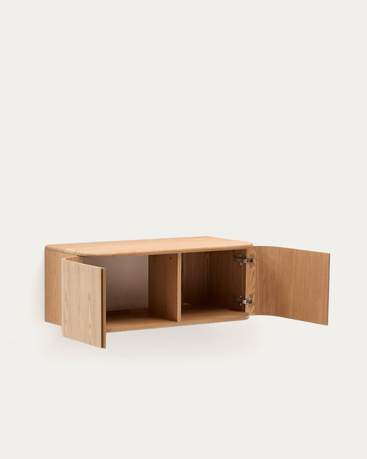 - 2 doors with soft closing system with 2 spaces inside the cupboard. Total width with open doors: 115 cm.
