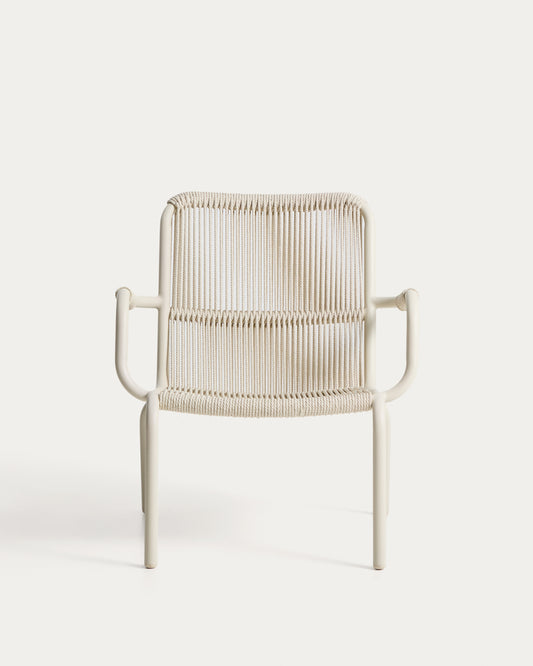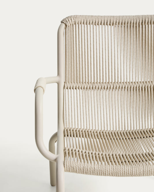 Salis stackable armchair in ecru aluminium and ecru synthetic rope cord