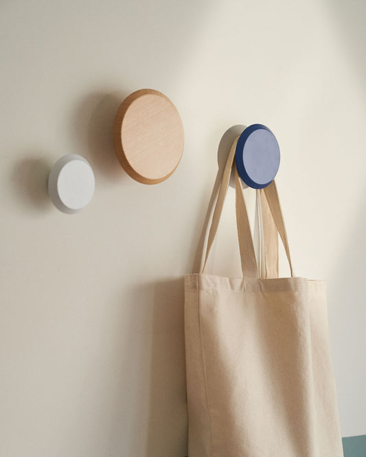 Set of 3 Nadua hangers in solid wood with a natural, blue and white beech finish