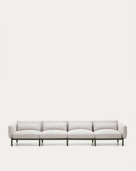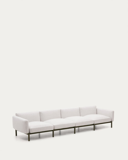 - Sorells 4-seater modular outdoor sofa with beige upholstery and aluminium structure with green finish.