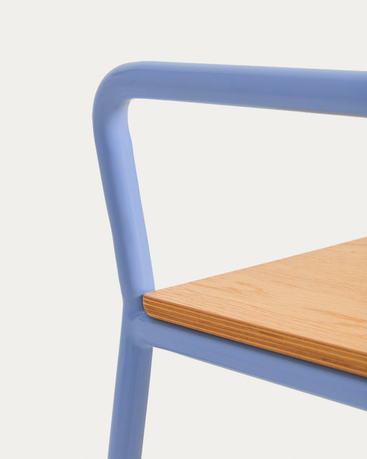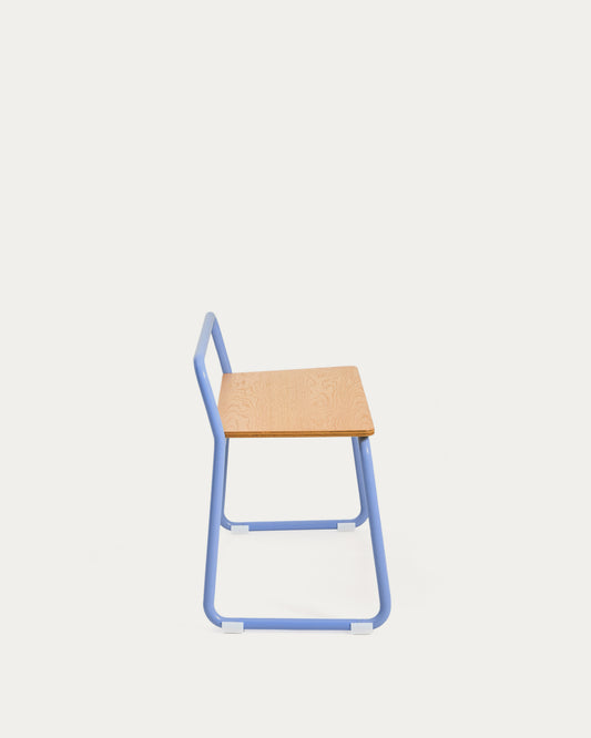 Tinn ash veneer bench with a blue metal structure, 75 cm