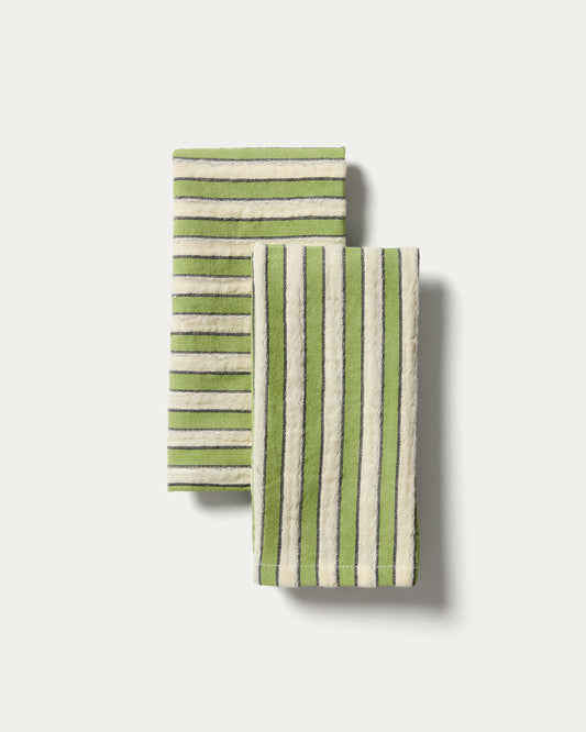 Ulena set of 2 green striped 100% cotton napkins 35 x 35cm