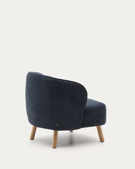 Ulit armchair in blue-grey chenille with solid beech wood legs in a natural finish