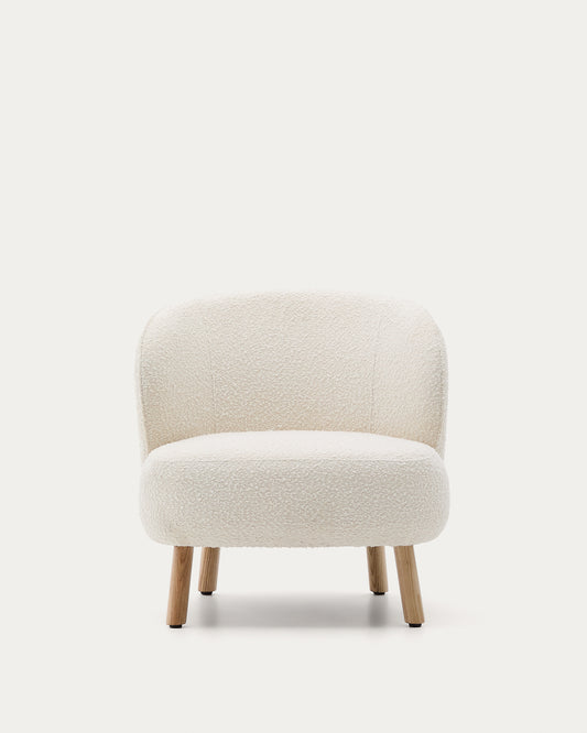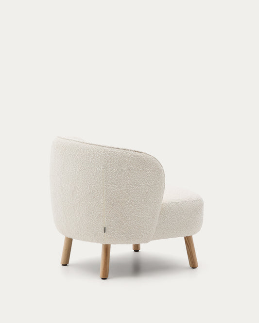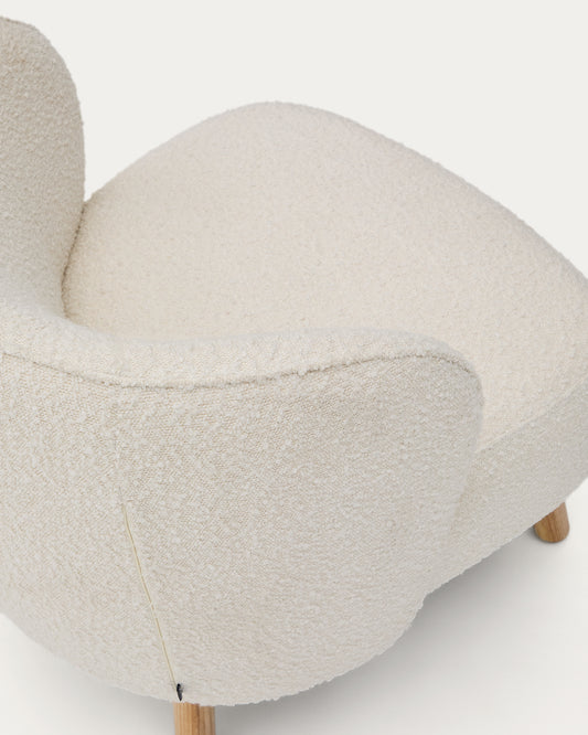 Ulit armchair in white bouclé with solid beech wood legs in a natural finish