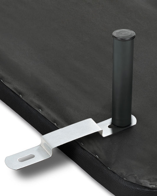 The Under bed base offers a solid structure and a design aimed at aiding the ventilation of the mattress and extend its useful life. Made from cold-rolled steel tubes with a square cross-section (30 x 30mm), its frame provides resistance and stability. The upper part is composed of a 10mm chipboard panel with strategically distributed holes, covered with plastic caps, which improve air circulation and aid the breathability of the mattress. Upholstered in black 3D fabric, this base incorporates a 100% polyester material with a 3D honeycomb-like structure, which allows for excellent ventilation. Its thickness and configuration provide lightness, breathability and anti-slip properties, ensuring that the mattress always stays in place. In its double version, the Under base includes slats to join the two parts of the bed base, ensuring a firm and stable union. Compatible with our beds without bases, it can be completed with Lyx or Ise legs, available separately. A practical, resistant and functional solution for a comfortable sleep.
