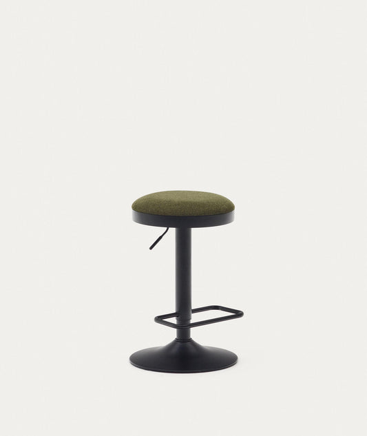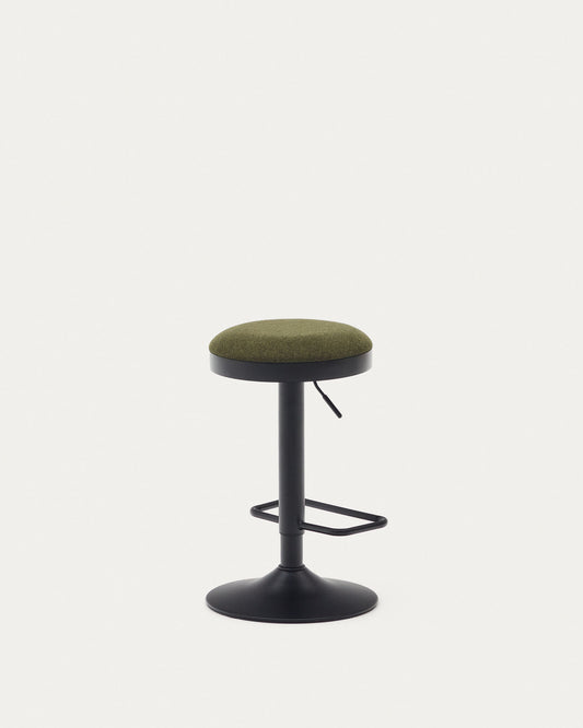 Zaib stool in dark green chenille and matt black steel height 63-84 cm FSC 100%