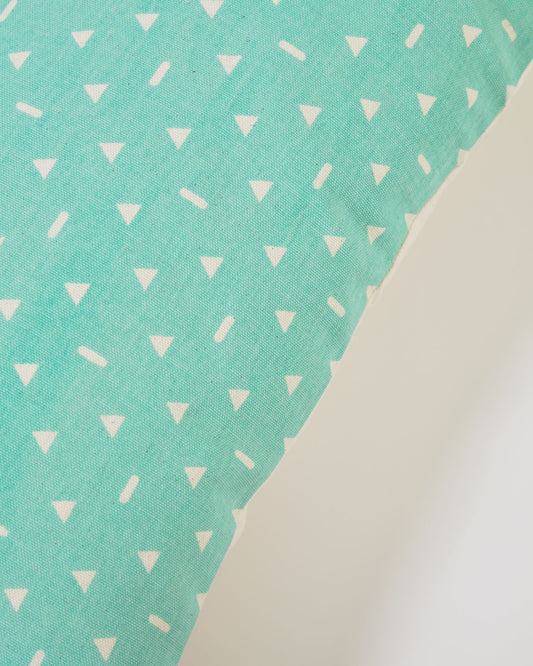 Zale 100% cotton cushion cover in turquoise with white triangles 30 x 50 cm