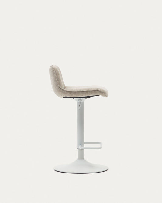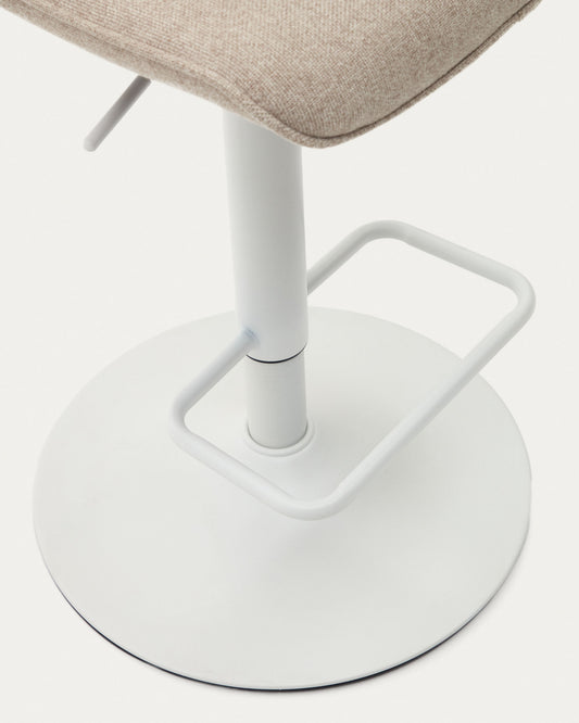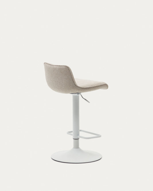 Zenda stool in beige chenille and matt white steel 81-102 cm FSC 100%